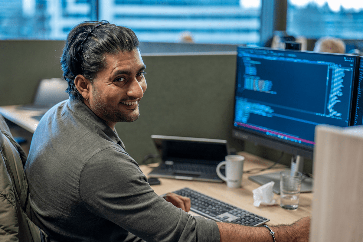 Løsningene våre driftes i Azure og eget datasenter. Back-end bruker vi .NET Core og skriver kildekoden i C#. Front-end jobber vi med TypeScript og React.